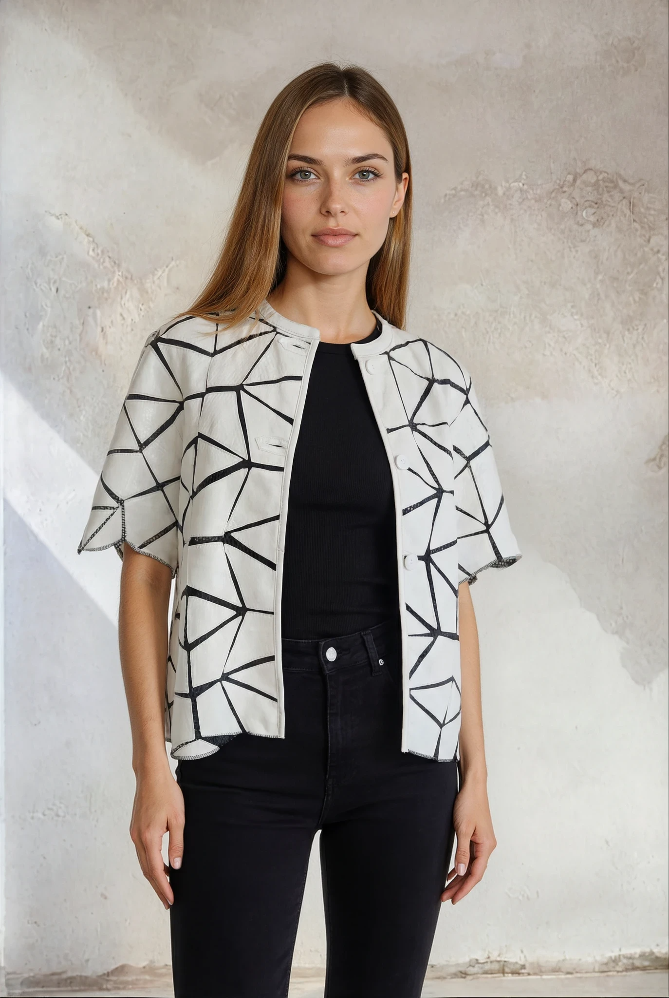 Made from genuine lambskin leather, each pattern is individually cut and hand-placed over soft mesh for a unique design.