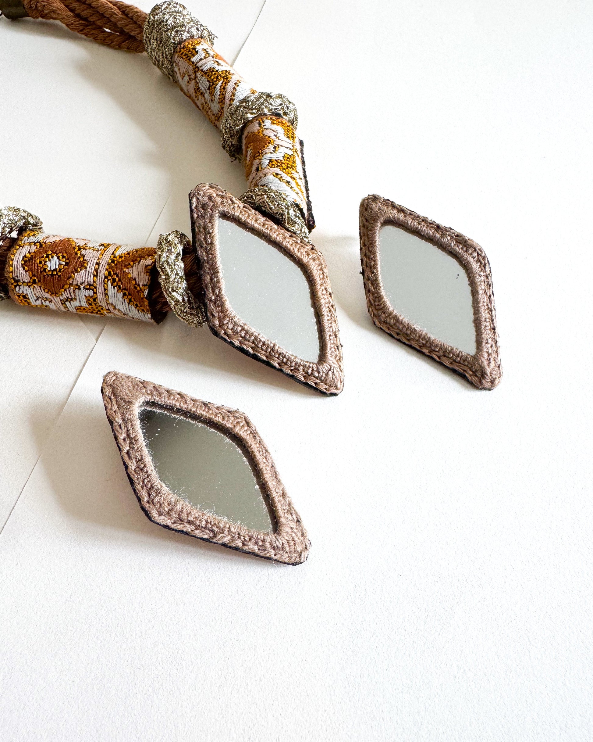 Delicately stitched with cotton threads and adorned with Mirrors. These fully handmade Necklace-earrings blends tradition with modern elegance. Lightweight, unique, and crafted in small batches—wear a piece of true artistry.